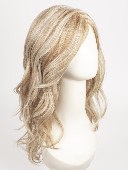 Roxie wearing READY FOR IT by GABOR in GF19-23SS BISCUIT | Light Ash Blonde Evenly Blended with Cool Platinum Blonde with Dark Roots