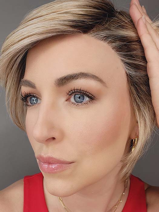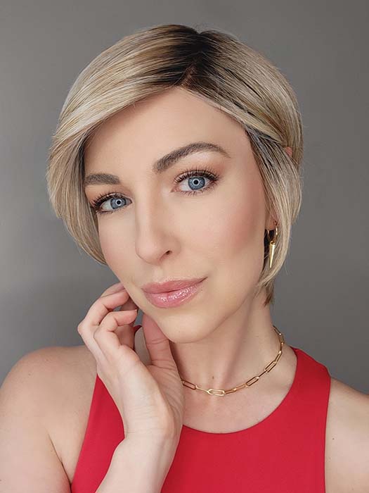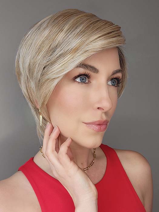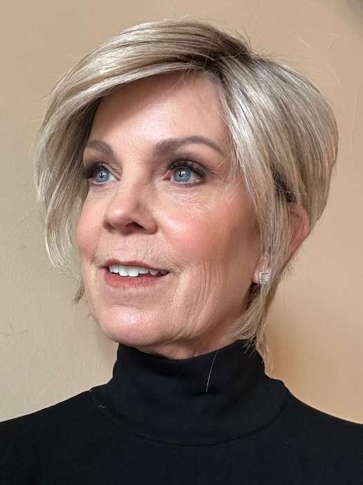 Susan Sparks @sparkles_intheworld wearing So Uplifting by GABOR in color GF19-23SS BISCUIT | Light Ash Blonde Evenly Blended with Cool Platinum Blonde with Dark Roots