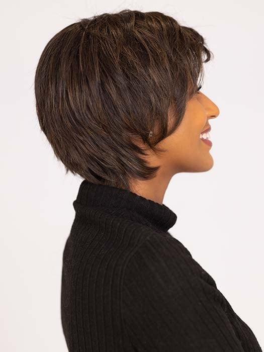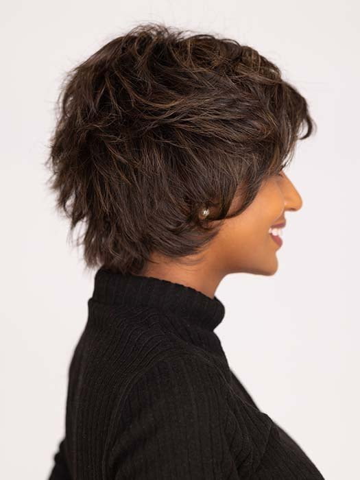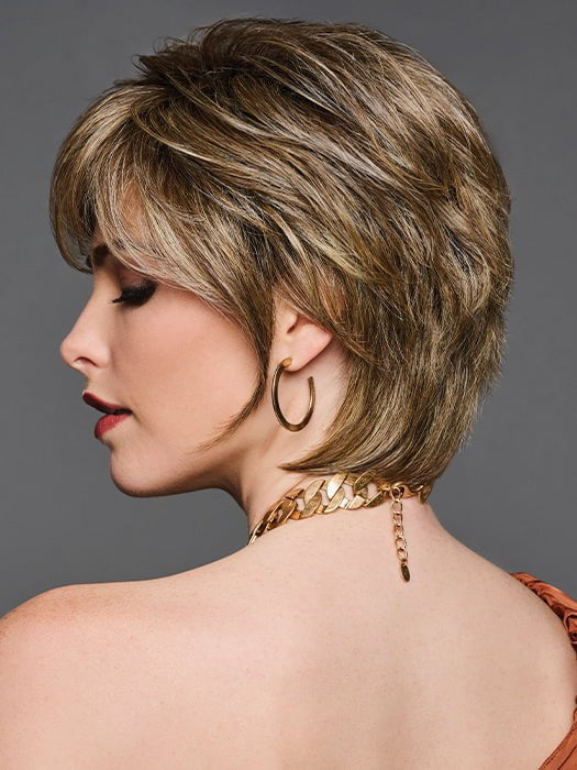 So Uplifting by Gabor presents a short, cropped hairstyle with a slightly tapered back and extended nape for a light and airy feel. The shattered layers have razor cut edges to create a voluminous look. This heat friendly synthetic wig allows you to smooth down the edges for a more feathery texture. This edgy short wig has an extended lace front for a realistic-looking hairline and monofilament part for a natural look.